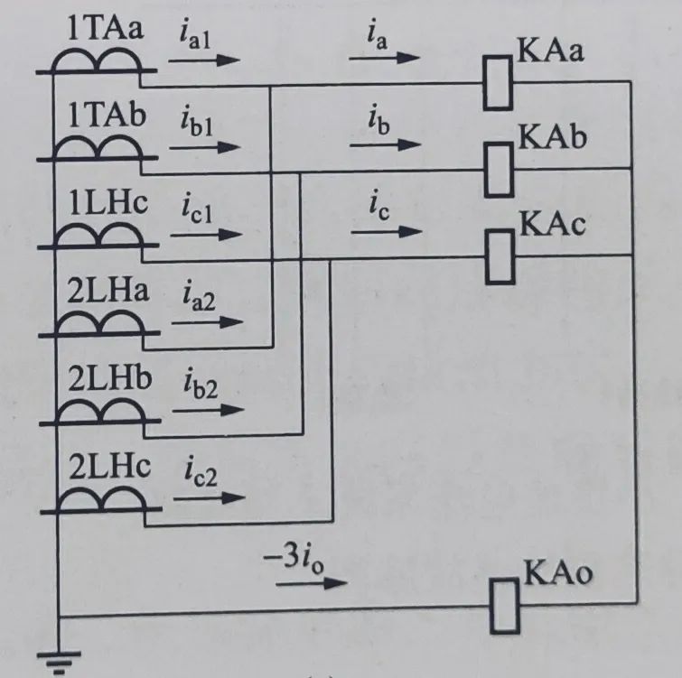 三角形接线,这种接线将三相电流互感器二次绕组按极性头尾相接,像三角形,极性一定不能搞错。这种接线主要用于保护二次回路的转角或滤除短路电流中的零序分量。在微机形差动保护中,常常将各侧电流互感器的二次回路均接为星形,在保护装置中通过软件计算进行电流转角与电流的零序分量滤除,这样就简化了接线。