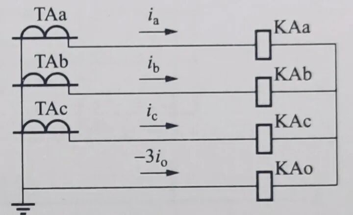 单相式接线,这种接线只有一只电流互感器组成,接线简单。它可以用于小电流接地系统零序电流的测量,也可以用于三相对称电流中电流的测量或过负荷保护等。